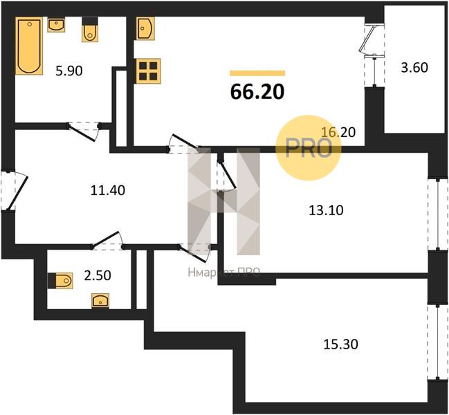 Квартира: 2 к 66,20 кв.м., 13 этаж в комплексе Южный сад, 3 очередь, корп.Кленовая аллея, сдача: 3кв. , этажей: 25, адрес Екатеринбург г., 2-я Новосибирская ул., д. 12а, Застройщик: Ривьера-Инвест-Екб.