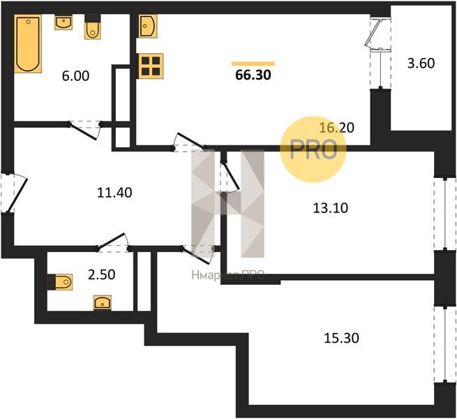 Квартира: 2 к 66,30 кв.м., 11 этаж в комплексе Южный сад, 3 очередь, корп.Кленовая аллея, сдача: 3кв. , этажей: 25, адрес Екатеринбург г., 2-я Новосибирская ул., д. 12а, Застройщик: Ривьера-Инвест-Екб.