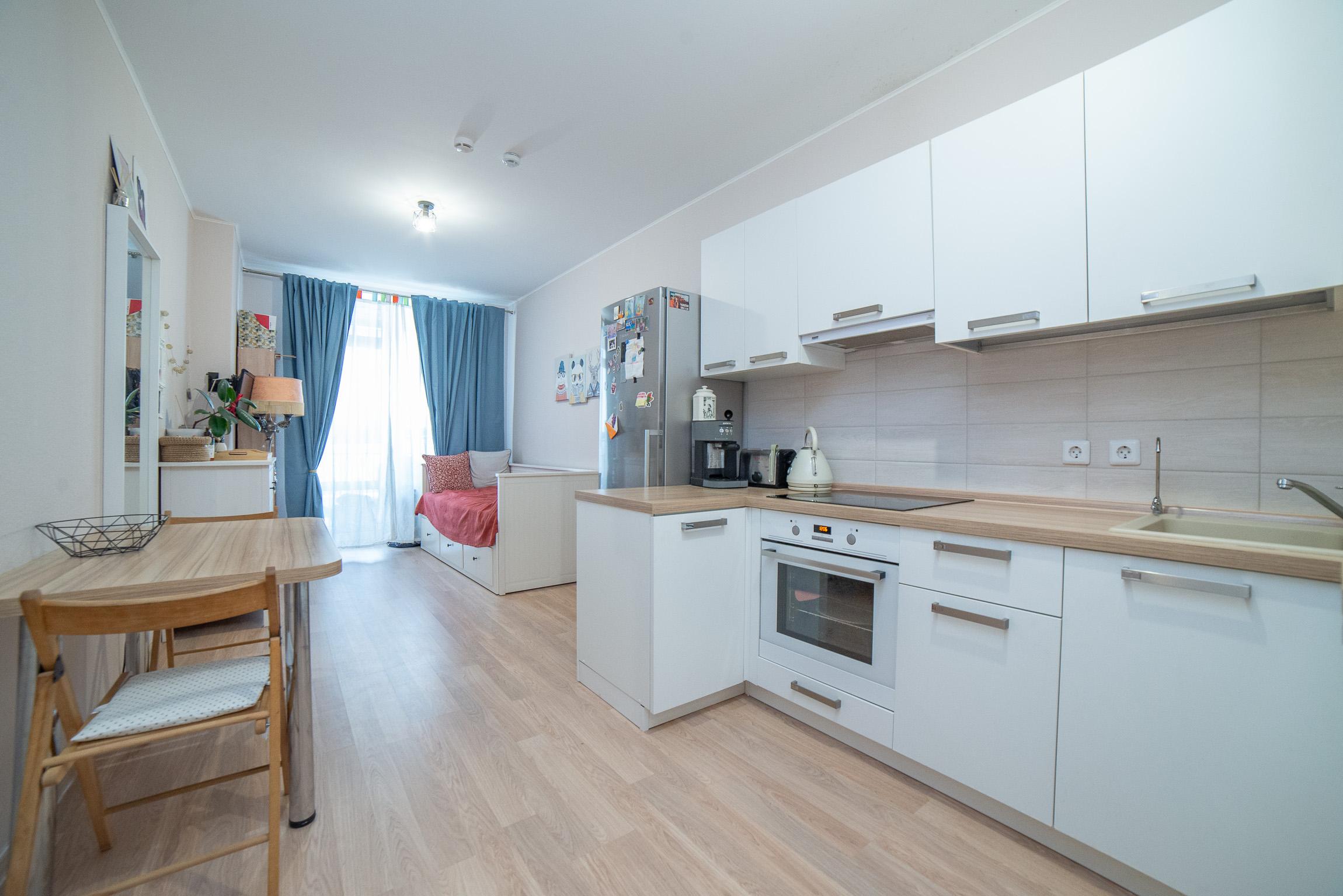 Квартира с просторной кухней в ЖК Woods. Планировка с функционалом 2ух комнатной квартиры: - Кухня-гостиная около 18 кв.м. с выходом на лоджию; - Гардеробная для хранения вещей; - Светлая комната (окна выходят во двор). Уникальный жилой комплекс: - Закрытая территория (выезд во двор, только для разгрузки); - На территории двора многоуровневый наземный паркинг, и парк с тренажерами и беседкой. Вход в парк только для жителей комплекса; - Своя УК, которая следит за состоянием двора и подъезда. В 5 минутах от дома остановка автобусов и троллейбусов &"ТК Академический&" Состояние квартиры не требует вложений. Звоните, записывайтесь на просмотр. С удовольствием организуем показ в удобное время.