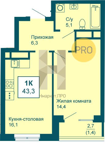 Квартира: 1 к 43,30 кв.м., 11 этаж в комплексе Новая Ботаника - 2, 1 очередь, корп.Янтарный, сдача: 2кв. , этажей: 21, адрес Екатеринбург г., 8 Марта ул., д. 198, Застройщик: Ривьера-Инвест-Екб.