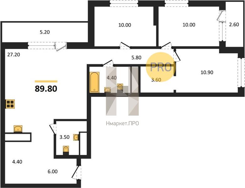 | Общая площадь: | 89.80 м2 |
