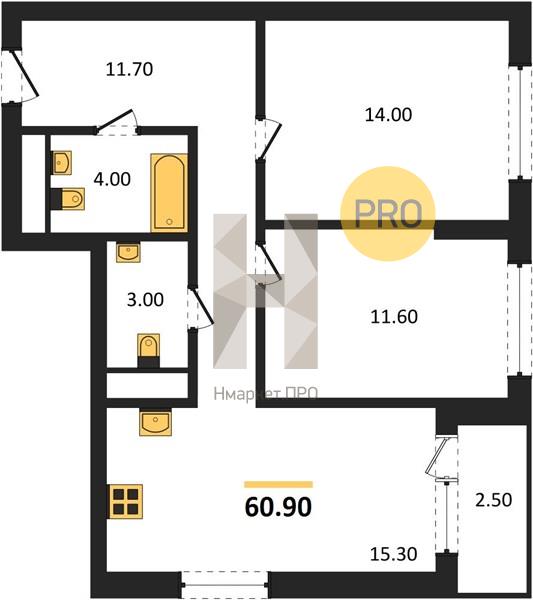 | Общая площадь: | 60.90 м2 |