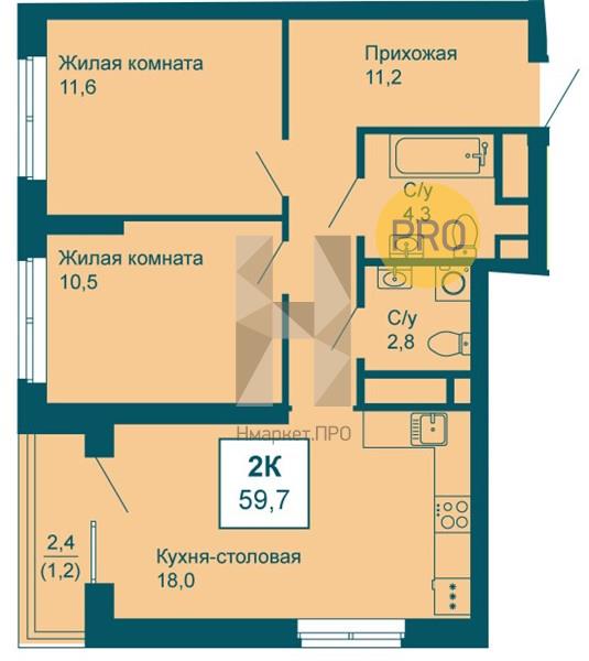 Квартира: 2 к 59,70 кв.м., 8 этаж в комплексе Новая Ботаника - 2, 1 очередь, корп.Янтарный, сдача: 2кв. , этажей: 21, адрес Екатеринбург г., 8 Марта ул., д. 198, Застройщик: Ривьера-Инвест-Екб.
