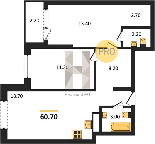 Квартира: 2 к 60,70 кв.м., 9 этаж в комплексе Новая Ботаника - 2, 1 очередь, корп.Янтарный, сдача: 2кв. , этажей: 21, адрес Екатеринбург г., 8 Марта ул., д. 198, Застройщик: Ривьера-Инвест-Екб.