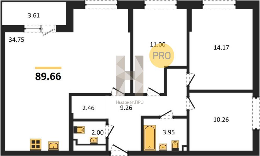 Купить 3-комнатную квартиру, 89.66 м2 № 5796111