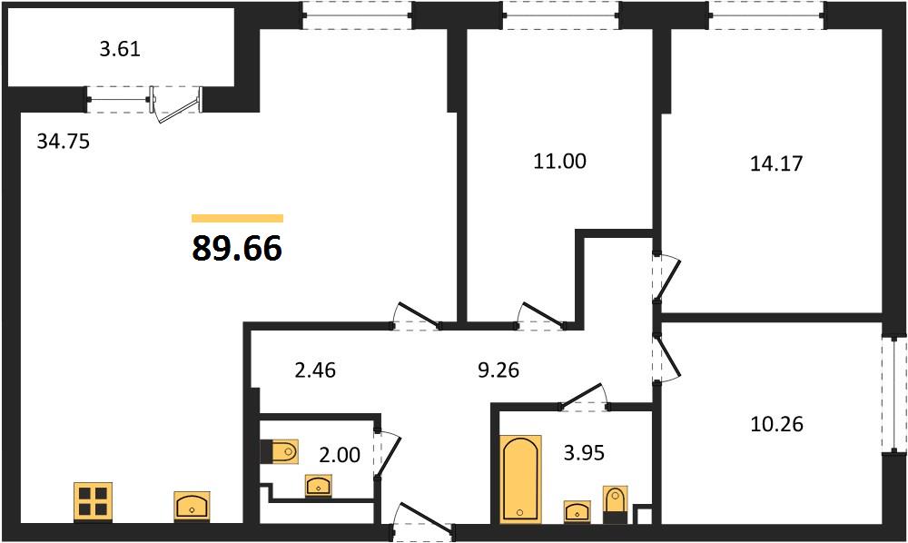 Квартира: 3 к 89,66 кв.м., 20 этаж в комплексе Green Garden, 1 очередь, корп.1, сдача: 3кв. , этажей: 25, адрес Екатеринбург г., 8 Марта ул., д. 204е, Застройщик: Стройтэк.