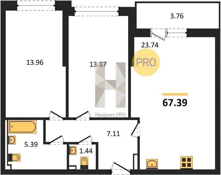 Квартира: 2 к 67,39 кв.м., 23 этаж в комплексе Green Garden, 1 очередь, корп.1, сдача: 3кв. , этажей: 25, адрес Екатеринбург г., 8 Марта ул., д. 204е, Застройщик: Стройтэк.