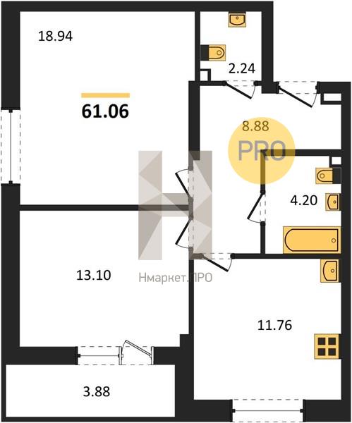 | Общая площадь: | 61.06 м2 |