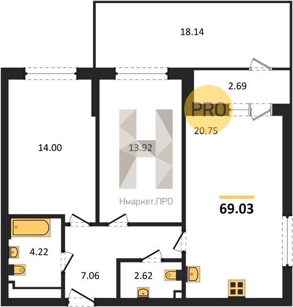 | Общая площадь: | 69.03 м2 |