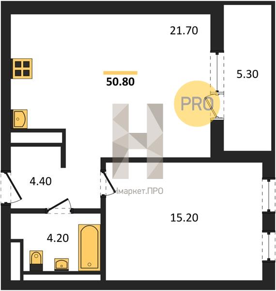 Квартира: 1 к 50,80 кв.м., 3 этаж в комплексе Совушки, 5 очередь, корп.33.1, сдача: 4кв. , этажей: 4, адрес Екатеринбург г., Абрикосовая ул., д. 1, Застройщик: Партнер-Строй.