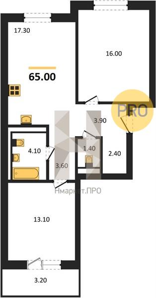 Купить 2-комнатную квартиру, 61.80 м2 № 6214233