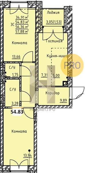 | Общая площадь: | 54.83 м2 |