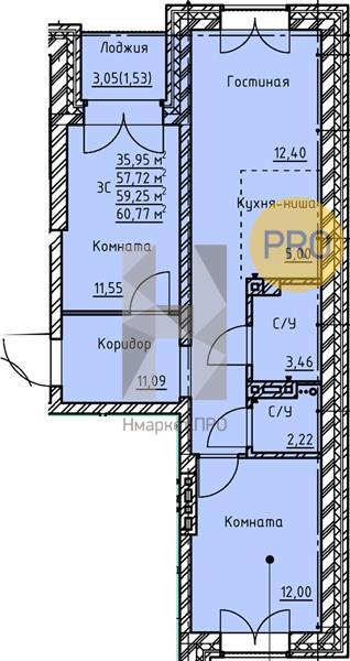 Квартира: 2 к 57,72 кв.м., 4 этаж в комплексе Твоя Привилегия, 3 очередь, корп.2.1, сдача: 1кв. , этажей: 4, адрес Екатеринбург г., Академический р-н, , Застройщик: СЗ 45-й Квартал.