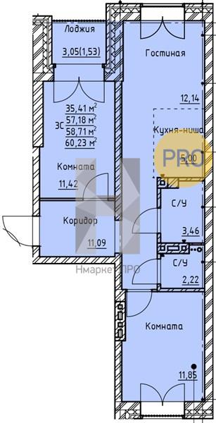 Квартира: 2 к 57,18 кв.м., 2 этаж в комплексе Твоя Привилегия, 3 очередь, корп.2.1, сдача: 1кв. , этажей: 4, адрес Екатеринбург г., Академический р-н, , Застройщик: СЗ 45-й Квартал.