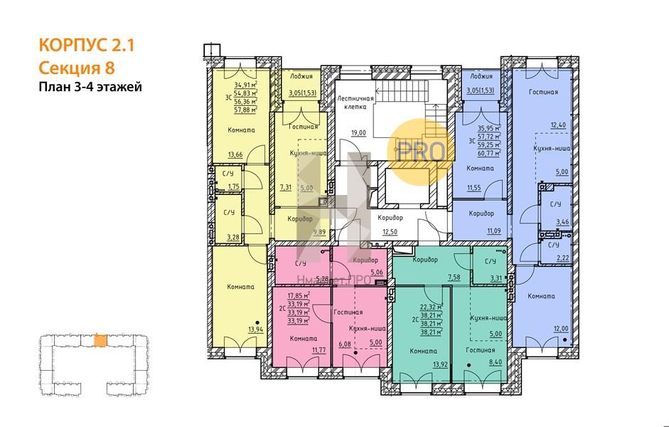 Квартира: 2 к 57,72 кв.м., 3 этаж в комплексе Твоя Привилегия, 3 очередь, корп.2.1, сдача: 1кв. , этажей: 4, адрес Екатеринбург г., Академический р-н, , Застройщик: СЗ 45-й Квартал.