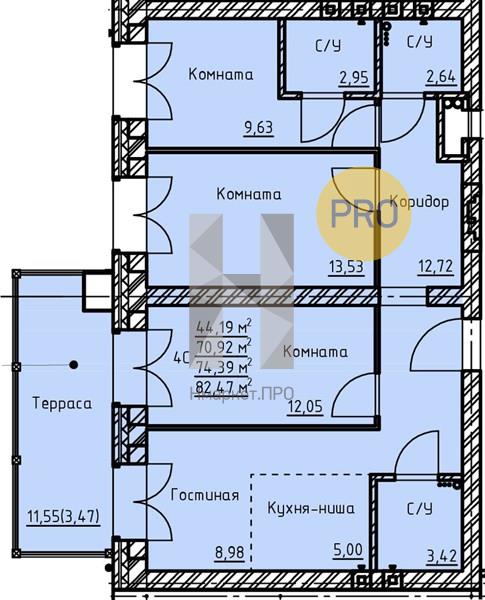 Квартира: 3 к 70,92 кв.м., 1 этаж в комплексе Твоя Привилегия, 3 очередь, корп.2.1, сдача: 1кв. , этажей: 4, адрес Екатеринбург г., Академический р-н, , Застройщик: СЗ 45-й Квартал.