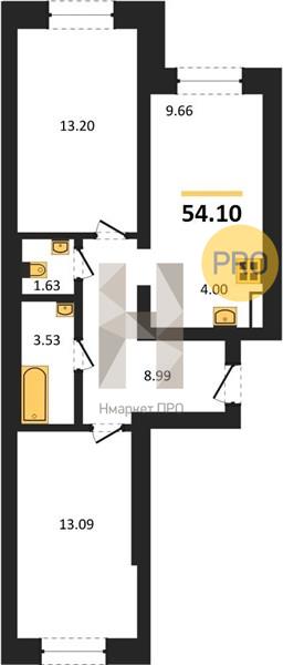 Купить 2-комнатную квартиру, 53.00 м2 № 5013042