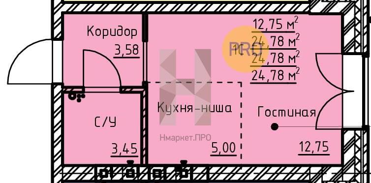 Студия: 24,78 кв.м., 2 этаж в комплексе Твоя Привилегия, 3 очередь, корп.2.1, сдача: 1кв. , этажей: 4, адрес Екатеринбург г., Академический р-н, , Застройщик: СЗ 45-й Квартал.