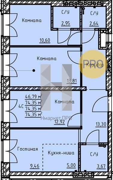 | Общая площадь: | 74.35 м2 |
