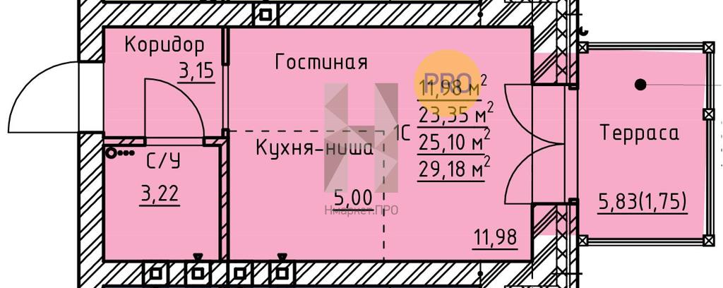 Студия: 23,35 кв.м., 1 этаж в комплексе Твоя Привилегия, 3 очередь, корп.2.1, сдача: 1кв. , этажей: 4, адрес Екатеринбург г., Академический р-н, , Застройщик: СЗ 45-й Квартал.