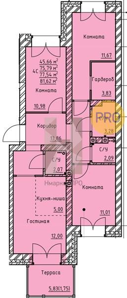 | Общая площадь: | 75.79 м2 |