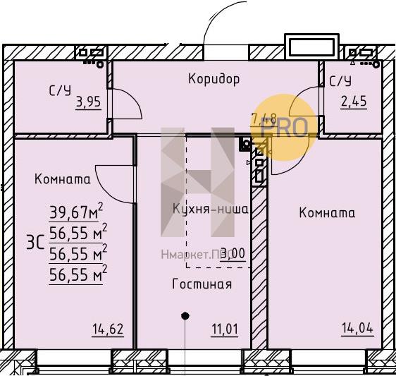 | Общая площадь: | 56.55 м2 |