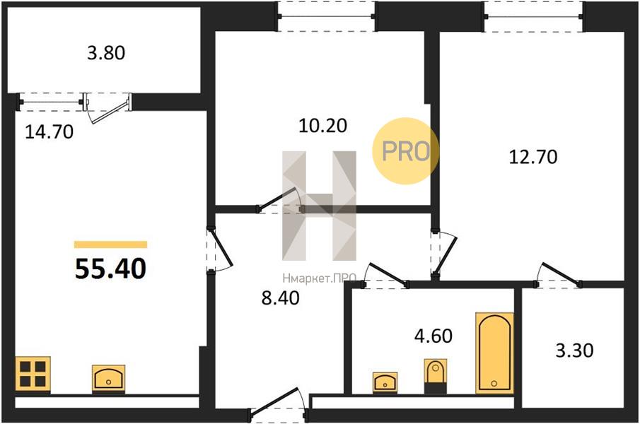 Квартира: 2 к 55,40 кв.м., 23 этаж в комплексе А+, 1 очередь, корп.1.4, сдача: 4кв. , этажей: 25, адрес Екатеринбург г., Академика Ландау ул., , Застройщик: Девелопмент-Юг.