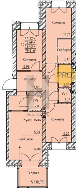 Квартира: 3 к 73,68 кв.м., 1 этаж в комплексе Твоя Привилегия, 3 очередь, корп.2.1, сдача: 1кв. , этажей: 4, адрес Екатеринбург г., Академический р-н, , Застройщик: СЗ 45-й Квартал.