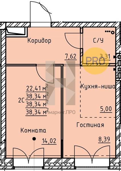 | Общая площадь: | 38.34 м2 |