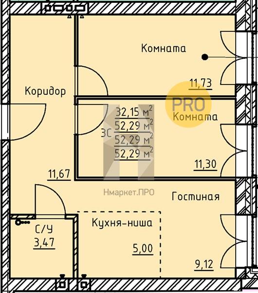 | Общая площадь: | 52.29 м2 |