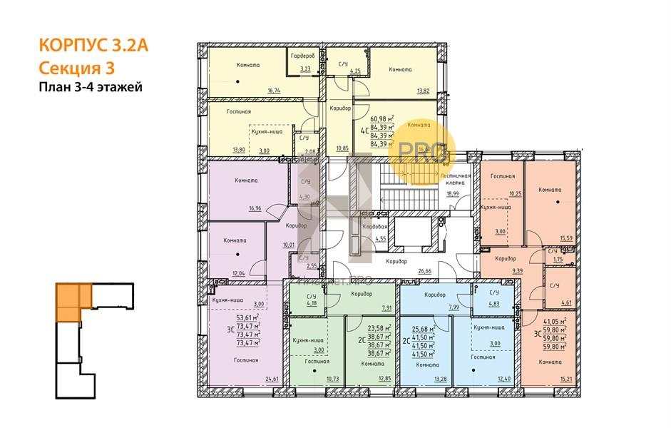 Квартира: 2 к 73,47 кв.м., 4 этаж в комплексе Твоя Привилегия, 3 очередь, корп.3.2А, сдача: 2кв. , этажей: 4, адрес Екатеринбург г., Академический р-н, , Застройщик: СЗ 45-й Квартал.