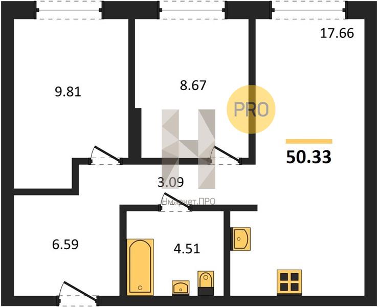 Общая площадь: 50.33 м2