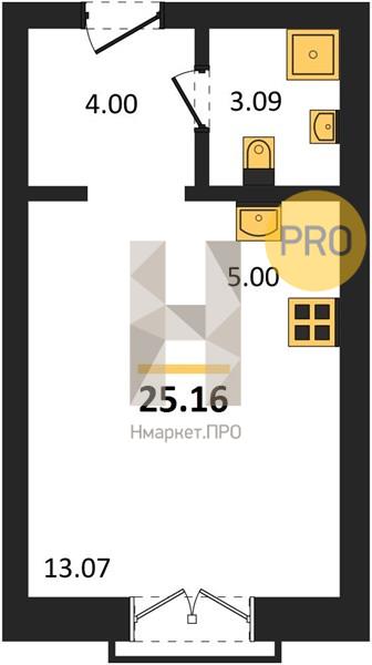 Студия: 25,16 кв.м., 4 этаж в комплексе Твоя Привилегия, 3 очередь, корп.2.1, сдача: 1кв. , этажей: 4, адрес Екатеринбург г., Академический р-н, , Застройщик: СЗ 45-й Квартал.