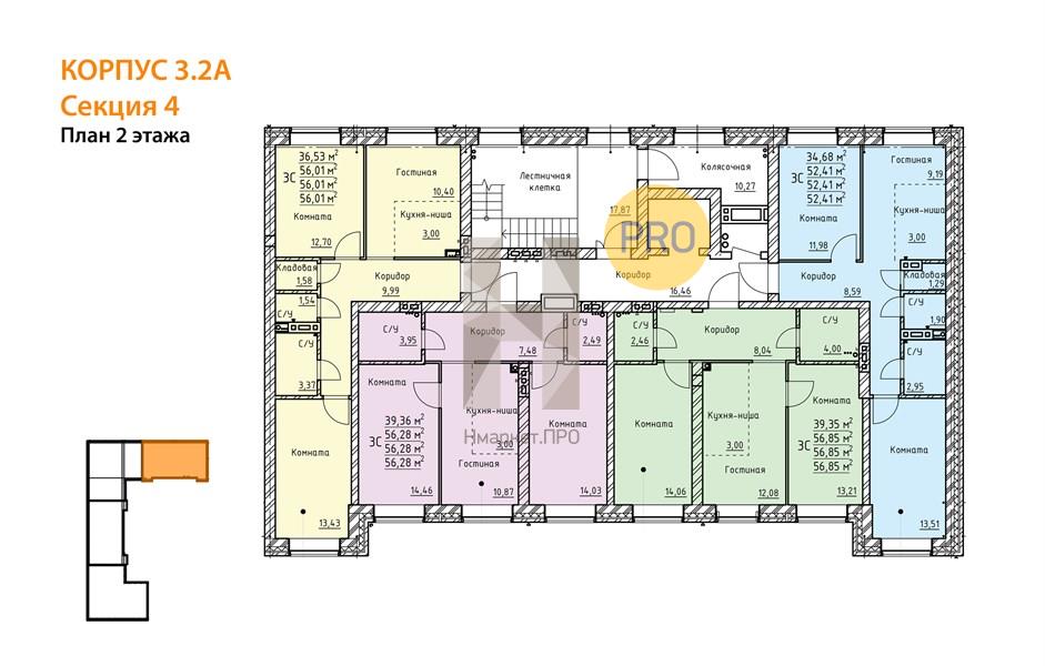 Общая площадь: 56.01 м2