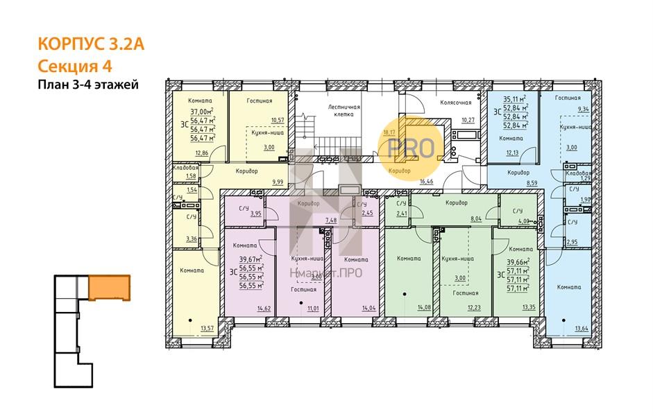 Квартира: 2 к 52,84 кв.м., 4 этаж в комплексе Твоя Привилегия, 3 очередь, корп.3.2А, сдача: 2кв. , этажей: 4, адрес Екатеринбург г., Академический р-н, , Застройщик: СЗ 45-й Квартал.