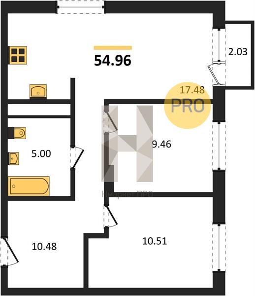 | Общая площадь: | 54.96 м2 |