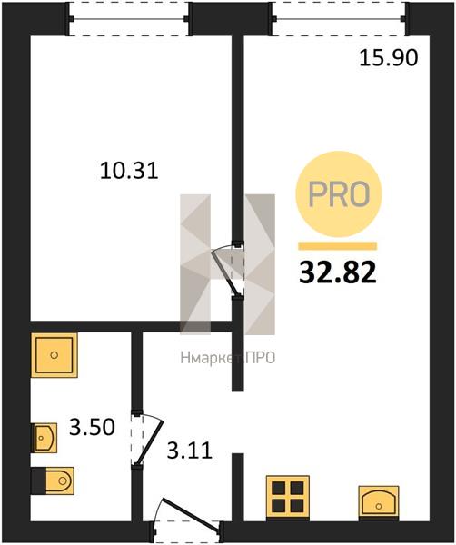 Купить 1-комнатную квартиру, 32.82 м2 № 7227449
