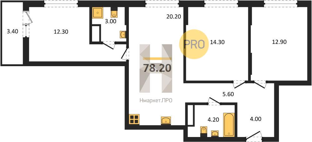 | Общая площадь: | 78.20 м2 |