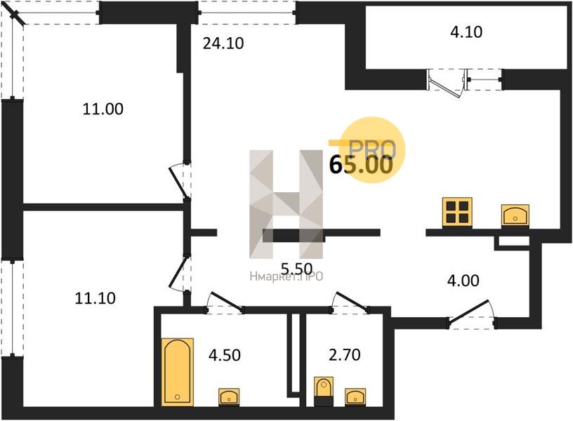 Квартира: 2 к 65,00 кв.м., 4 этаж в комплексе Курчатов, 1 очередь, корп.1, сдача: 4кв. , этажей: 17, адрес Екатеринбург г., Академика Красовского ул., , Застройщик: Талан.