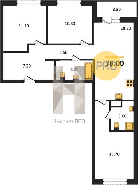 Квартира: 3 к 76,00 кв.м., 6 этаж в комплексе Курчатов, 1 очередь, корп.1, сдача: 4кв. , этажей: 17, адрес Екатеринбург г., Академика Красовского ул., , Застройщик: Талан.