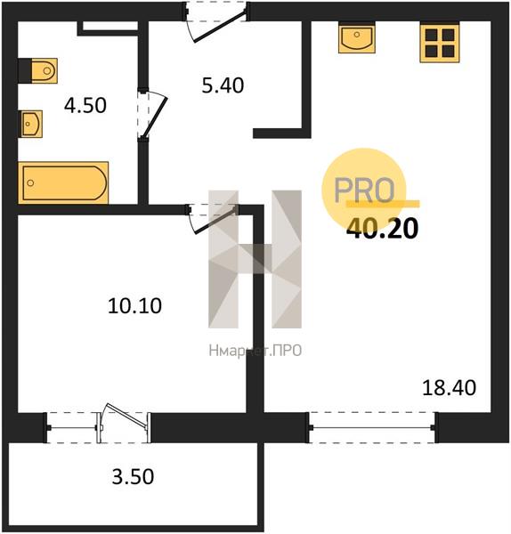 Квартира: 1 к 40,20 кв.м., 6 этаж в комплексе Курчатов, 1 очередь, корп.1, сдача: 4кв. , этажей: 17, адрес Екатеринбург г., Академика Красовского ул., , Застройщик: Талан.