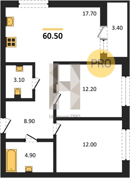 | Общая площадь: | 60.50 м2 |