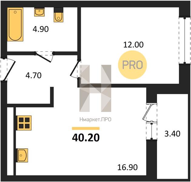 Квартира: 1 к 40,20 кв.м., 2 этаж в комплексе Курчатов, 1 очередь, корп.1, сдача: 4кв. , этажей: 17, адрес Екатеринбург г., Академика Красовского ул., , Застройщик: Талан.