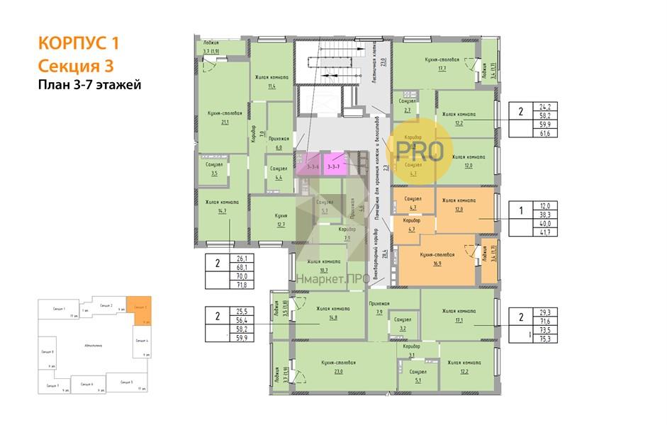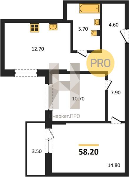Квартира: 2 к 58,20 кв.м., 6 этаж в комплексе Курчатов, 1 очередь, корп.1, сдача: 4кв. , этажей: 17, адрес Екатеринбург г., Академика Красовского ул., , Застройщик: Талан.