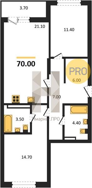 | Общая площадь: | 70.00 м2 |