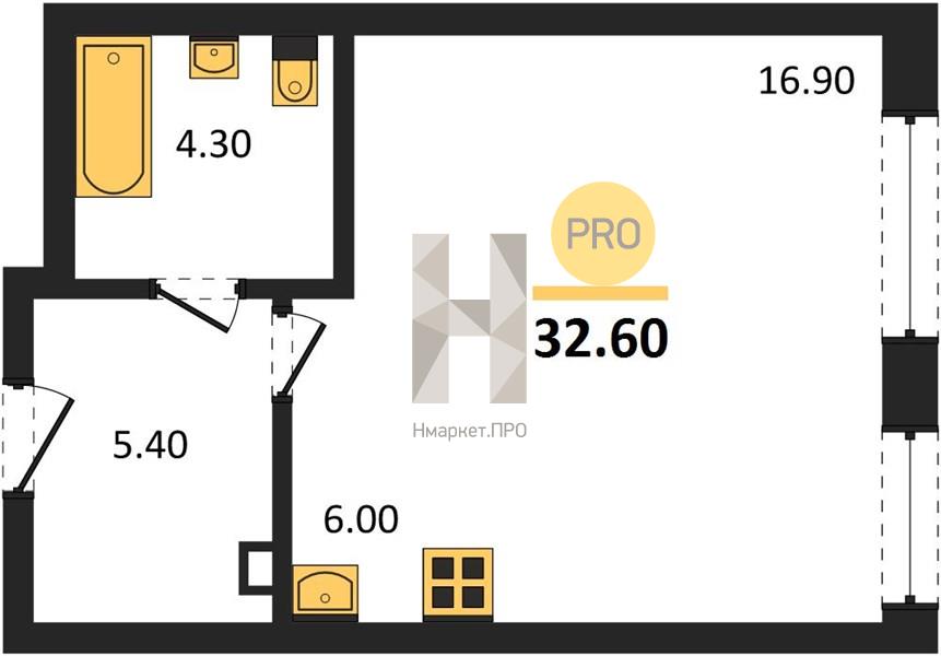 Студия: 32,60 кв.м., 2 этаж в комплексе Курчатов, 1 очередь, корп.1, сдача: 4кв. , этажей: 17, адрес Екатеринбург г., Академика Красовского ул., , Застройщик: Талан.