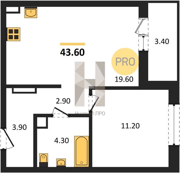 Квартира: 1 к 43,60 кв.м., 8 этаж в комплексе Курчатов, 1 очередь, корп.1, сдача: 4кв. , этажей: 17, адрес Екатеринбург г., Академика Красовского ул., , Застройщик: Талан.
