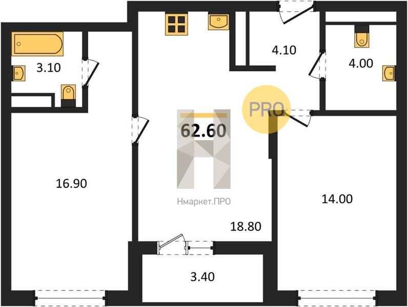 Квартира: 2 к 62,60 кв.м., 14 этаж в комплексе Курчатов, 1 очередь, корп.1, сдача: 4кв. , этажей: 17, адрес Екатеринбург г., Академика Красовского ул., , Застройщик: Талан.