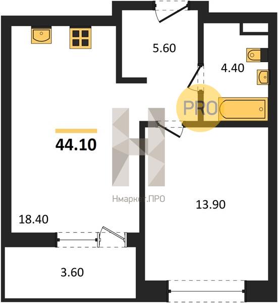 Квартира: 1 к 44,10 кв.м., 2 этаж в комплексе Курчатов, 1 очередь, корп.1, сдача: 4кв. , этажей: 17, адрес Екатеринбург г., Академика Красовского ул., , Застройщик: Талан.