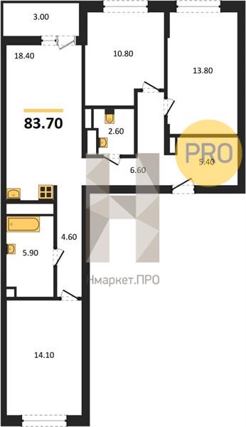 | Общая площадь: | 83.70 м2 |
